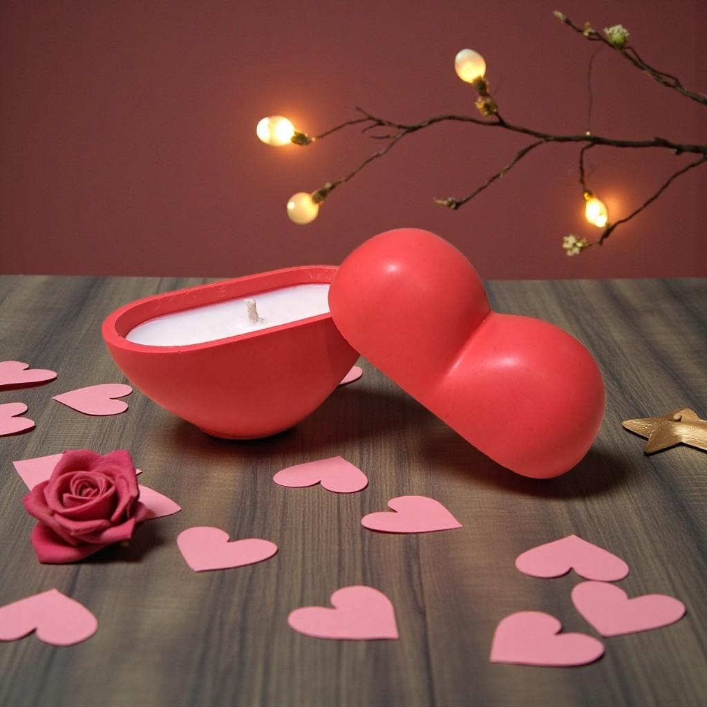 Bougie en forme de cœur contenant en Jesmonite fabriqué par nos soins